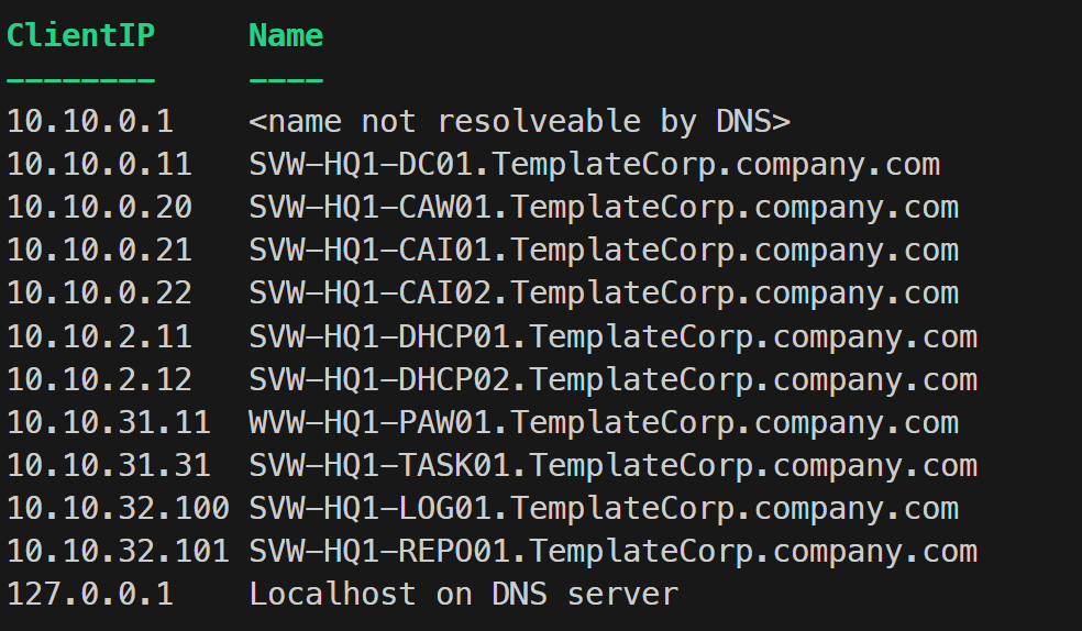 Especially the last example on grouping for ClientIP can be very handy to build a correlation table for the IP and the respective name of the system. This requires proper DNS infrastructure with all devices registered in place, of course. Here is how you can do this with PowerShell: