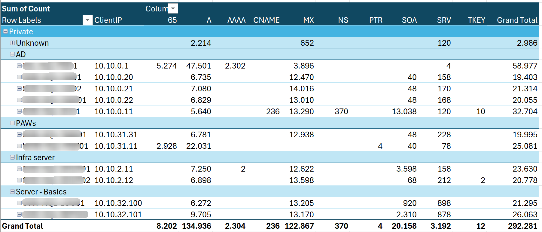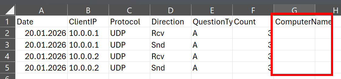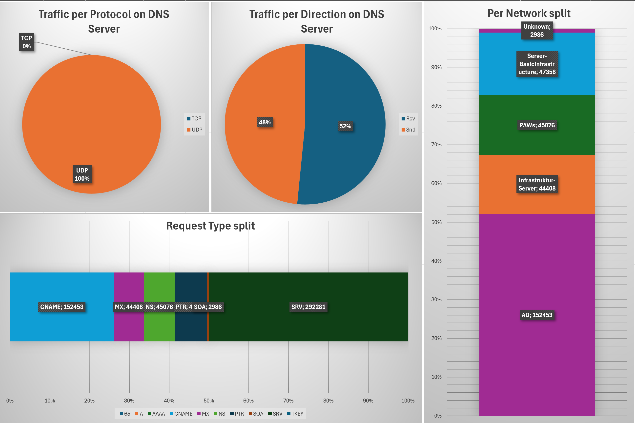 For a quick analysis on “Who is using my DNS servers for what kind of queries?”, Excel is totally fine. Simply put the generated PacketStatistic CSV files into a folder and tell Excel to import the folder via the data tab.